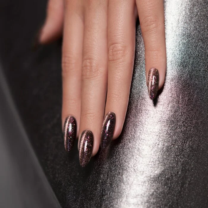 Rock Roxana gel polish je trajni lak za nokte koji postiže veliki uspjeh diljem svijeta! Ovaj bež-metalik trajni lak iz Indigo Cat Eye kolekcije kombinira sjaj ružičastog zlata i ružičaste čestice. Cat Eye ili Galaxy Nails efekt stvorit ćete uz pomoć jednostavnog magneta s dva nastavka. Dvodimenzionalni efekt magnetskog trajnog laka može se koristiti preko tamne baze – primjerice uz Mr. Black – ili kao klasična stilizacija s glitter efektom.